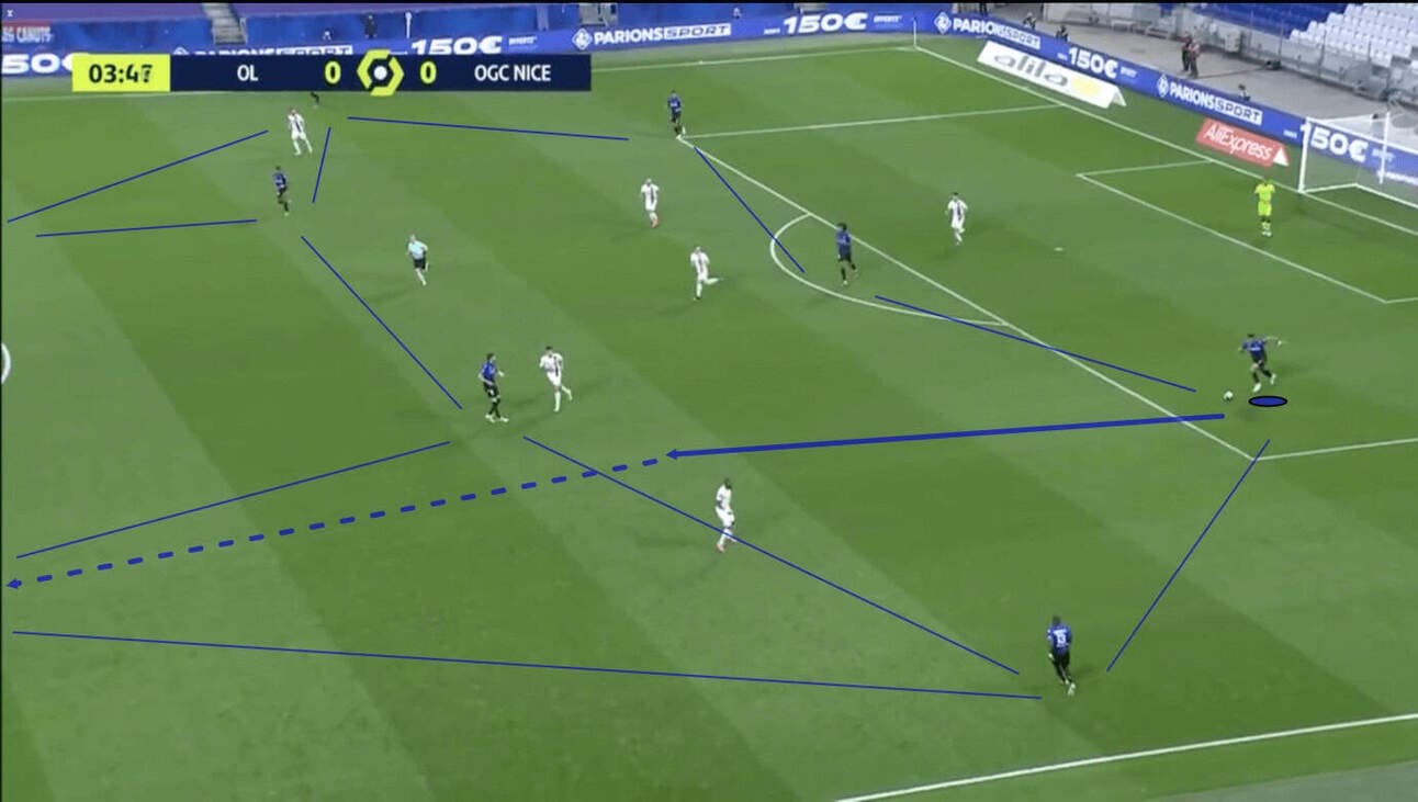 When the opposing team opts for an aggressive high press, the objective shifts: it’s not simply about maintaining possession but about intentionally drawing the press and bypassing it to generate free space behind the first pressing line.