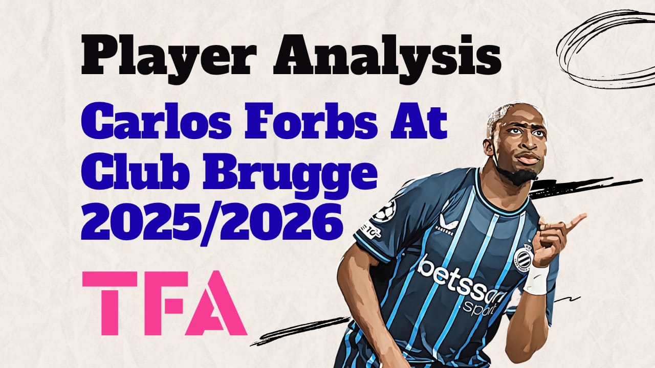 This Carlos Forbs scout report shares analysis of Carlos Forbs’ style of play with Club Brugge in the Belgian Pro League and UEFA Champions League 2025/2026.